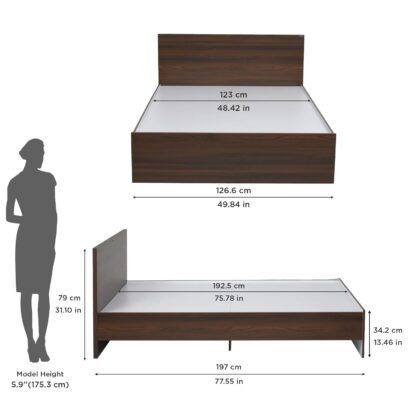 - Bed Dimensions: 197L x 126.6W x 79H cms/77.56L x 49.84 W x 31.1H x inches/1.97L x 1.27 W x 0.79H x M, Recommended mattresses size: 75 x 48 inches.